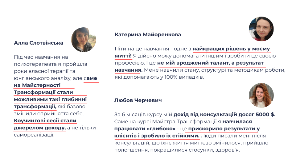 Ви не просто слухаєте, а працюєте і проживаєте досвід трансформації.